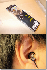 イヤーパッドにあたる部分はゴムで、円の一部がくちばし状になって耳の穴側にあたるようになっており、その部分に開いた穴から音が出るので聞こえ具合もカナル型とほぼ変わらない。もちろん1500円(購入時は786円)という価格なりの音質(これ以上のイヤホンを使っていないのでよくなったと思わない程度)で、音質にこだわる人には当然オススメしない。 - 形が特徴的なので暗闇でも左右を間違えない!